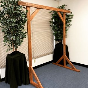 * This beautiful, rustic-style, wooden wedding arch is a great addition to any ceremony! You can dress it up with drapery or flowers/greenery!