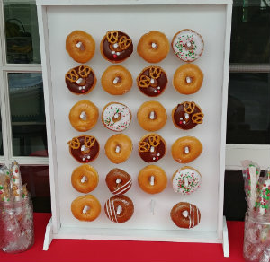 * This donut wall has 24 pegs and can hold up to 2 regular size donuts per peg. Make your event memorable! Everyone loves donuts!