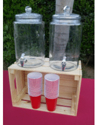 * This is a SINGLE drink dispenser unit. Choose your base material: wooden box, metal base, or wire base. These drink dispensers are rented individually or as a pair. Price is per unit. 5 Gallon Dispensers Only come with Metal Base.