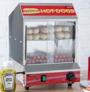 * This hot dog and sausage roller will actually cook and keep your hot dogs / sausages warm! About 10-15 minutes cook time for up to 30 hot dogs / sausages at a time! Requires electricity.