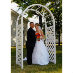 * This beautiful white wedding arch is a perfect addition to your special day! Adding flowers and other decorations to this arch will surely make for unforgettable pictures!